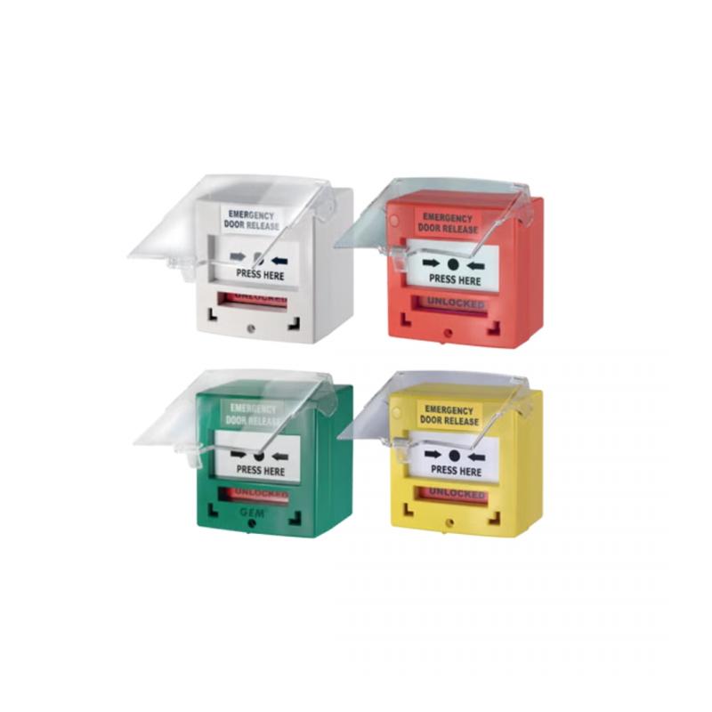 O acionador de emergência Assa Abloy CP-32G é um dispositivo de segurança projetado para uso em sistemas de alarme e emergência, com contatos NA/NF para integração em painéis e controladores. Equipado com chave de reset, permite a reposição rápida após acionamento, garantindo operação contínua e controle seguro das situações de emergência.