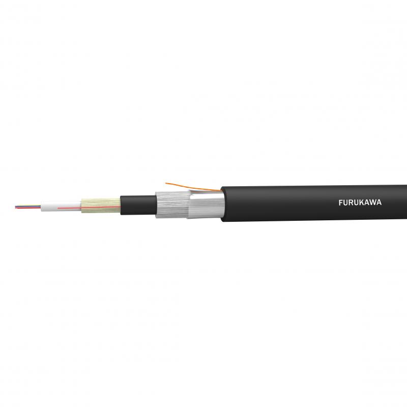 Sobre esse tubo, há uma camada de fibra de vidro para defesa contra roedores. Todo o conjunto é envolto por um revestimento de material termoplástico na cor preta. Essa construção robusta oferece resistência a fatores ambientais adversos, tornando-o adequado para diversas aplicações de rede.