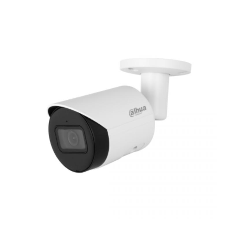 Câmera IP bullet Dahua DH-IPC-HFW2441SP-S-0280B com resolução 4 MP e lente fixa de 2,8 mm, oferecendo vídeo nítido e amplo campo de visão para vigilância de áreas externas. Com alcance IR de até 30 m, garante imagens claras mesmo no escuro, além de suporte a cartão SD para armazenamento local de gravações.