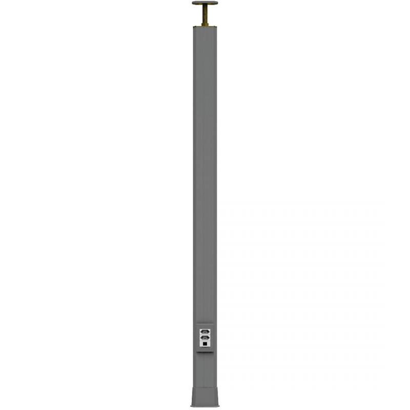 Estrutura tubular em alumínio extrudado com uma secção em cada lado, duas tampas Standard, um vergalhão extensor e fixador superior de 1m, 1 luva de arremate e base de apoio inferior e superior.