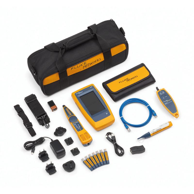Este Kit da Fluke é uma combinação de ferramentas robustas e eficientes, criada para permitir que o profissional de rede diagnostique e resolva problemas em cabos de cobre e fibra óptica com agilidade. Seu principal componente é o Testador LinkIQ Cable+Network, que atua no cabeamento de cobre, medindo a velocidade máxima suportada (até 10Gb/s), verificando o desempenho do PoE (Power over Ethernet) e identificando informações cruciais do switch conectado. Para localizar fisicamente cabos em painéis ou paredes, o kit inclui a Sonda IntelliTone Pro 200 juntamente com IDs Remotas, permitindo um rastreamento preciso e rápido.