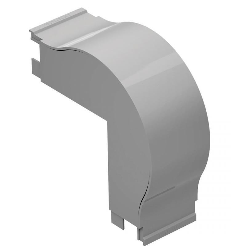 Curva fabricada em alumínio sob pressão. Acabamento das tampas iguais ás tampas das canaletas tornando a instalação mais requintada. A conexão da tampa com base da curva se dá sob pressão.