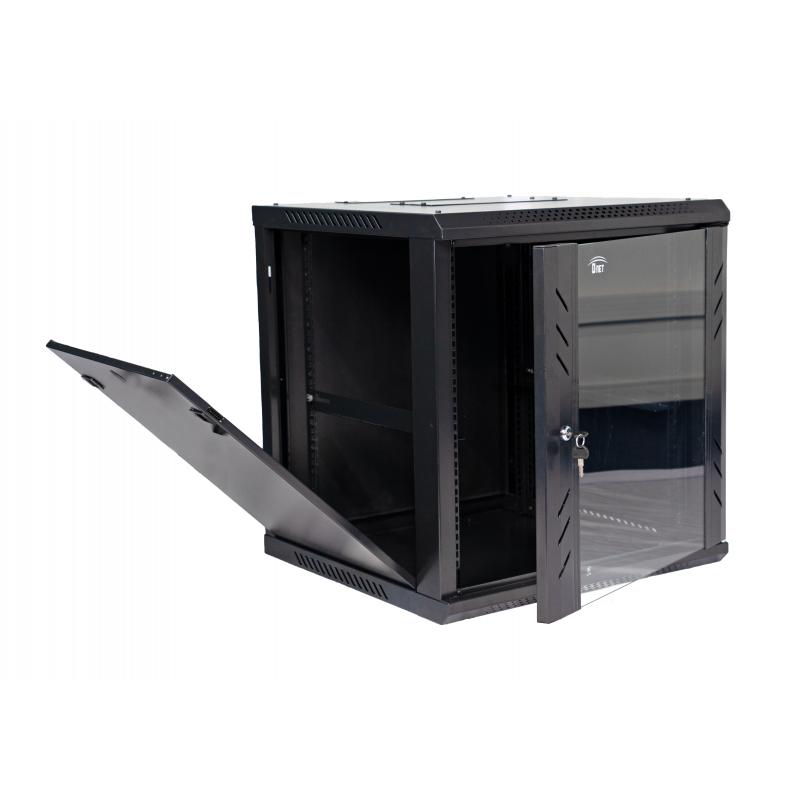 Com estrutura desmontável, porta de vidro para visibilidade e segurança, acabamento em preto e sem guias, oferece flexibilidade na organização. Ideal para ambientes com espaço restrito, é perfeito para servidores e switches.