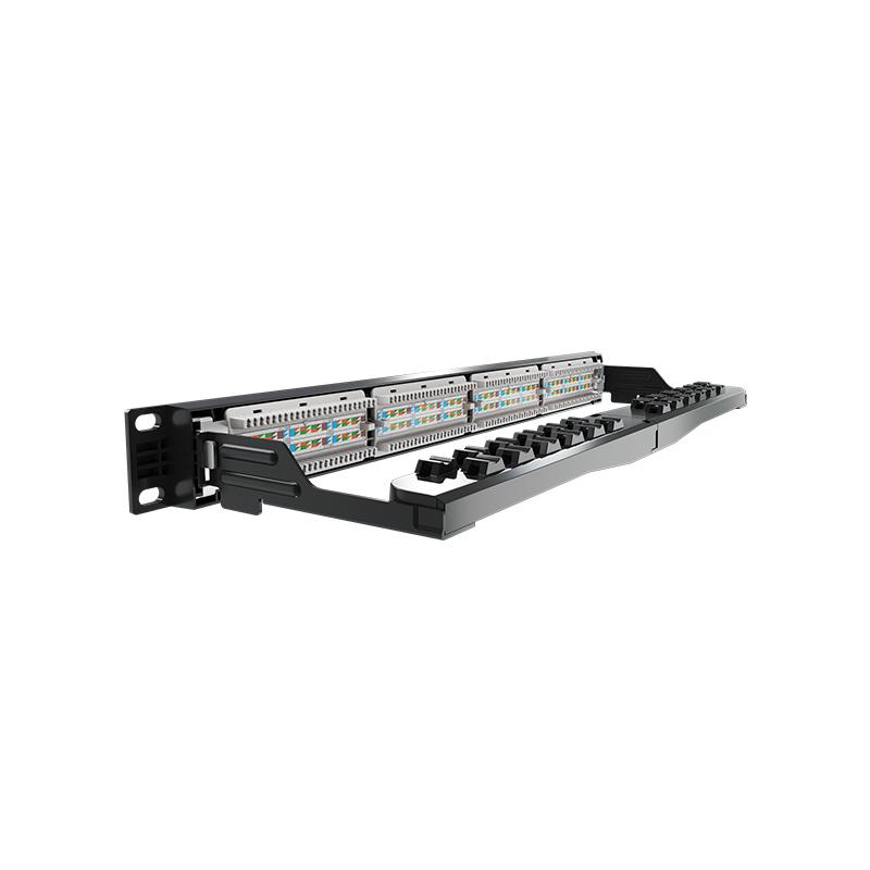 Possui guia traseira para fixação dos cabos, terminais IDC em bronze fosforoso estanhado compatíveis com condutores de 22 a 26 AWG, e local para identificação das portas. Mede 19"" de largura por 1U (44,45 mm) de altura, com pintura preta especial anti-corrosão.