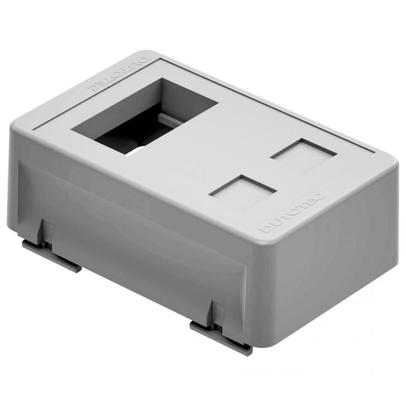 Porta equipamento com 1 tomada quadrada e 2 RJ45 Keystone. OBS: Embalagem com 20 peças.