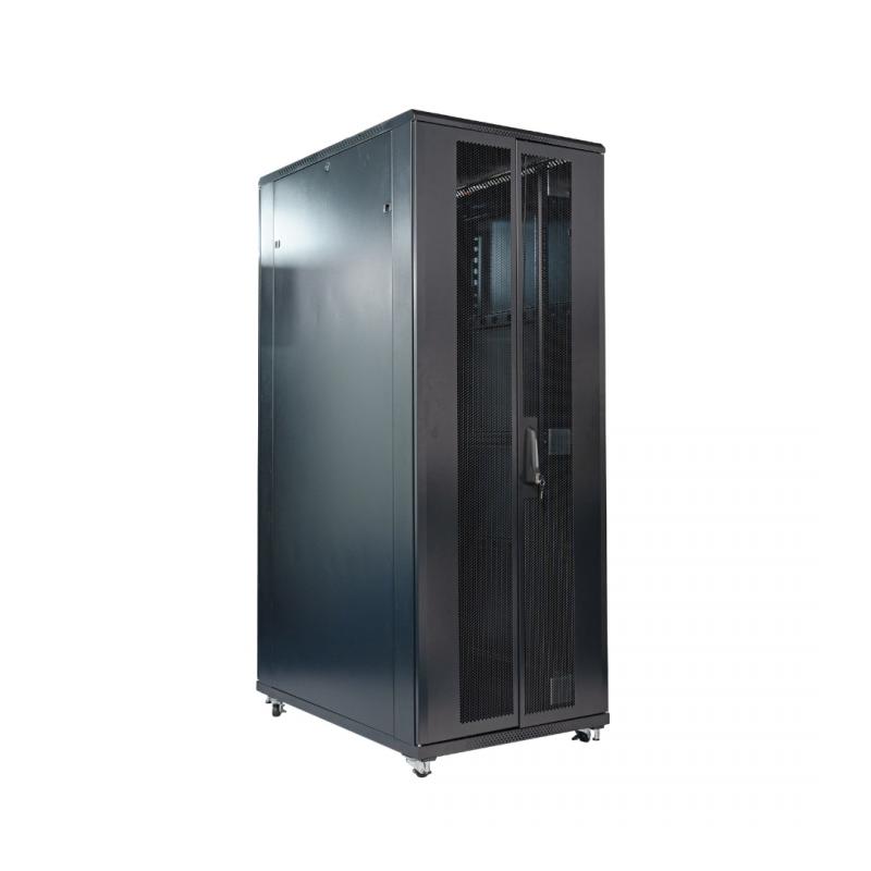 Rack Servidor desmontável 19", ideal para servidores e datacenters, projetado para acomodar cabeamento estruturado e equipamentos de rede e TI. Atende às normas ANSI/EIA RS-310-D, IEC297-2, DIN41494 e outras. Possui grau de proteção IP20, portas perfuradas padrão colméia (frontal e traseira), e ventilação de 75%.