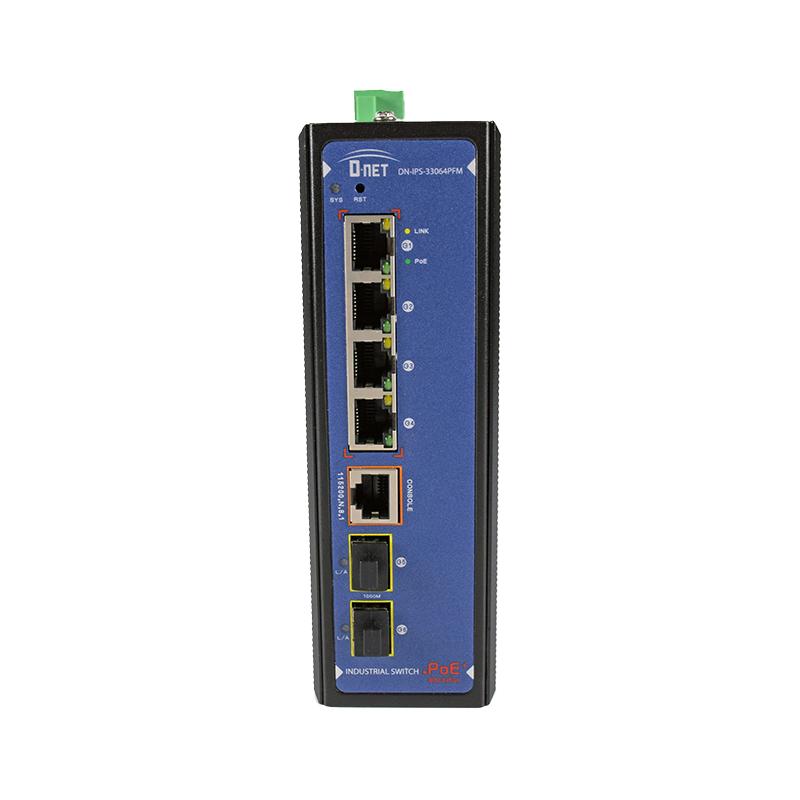 O Switch Industrial Gerenciável DN-IPS-33064PFM, projetado para atender às demandas da automação industrial e ambientes críticos de fábrica. Com 4 portas RJ-45 PoE de alta velocidade (10/100/1000 Mbps) e 2 portas combo SFP (100/1000 Mbps), oferece conectividade flexível e confiável.