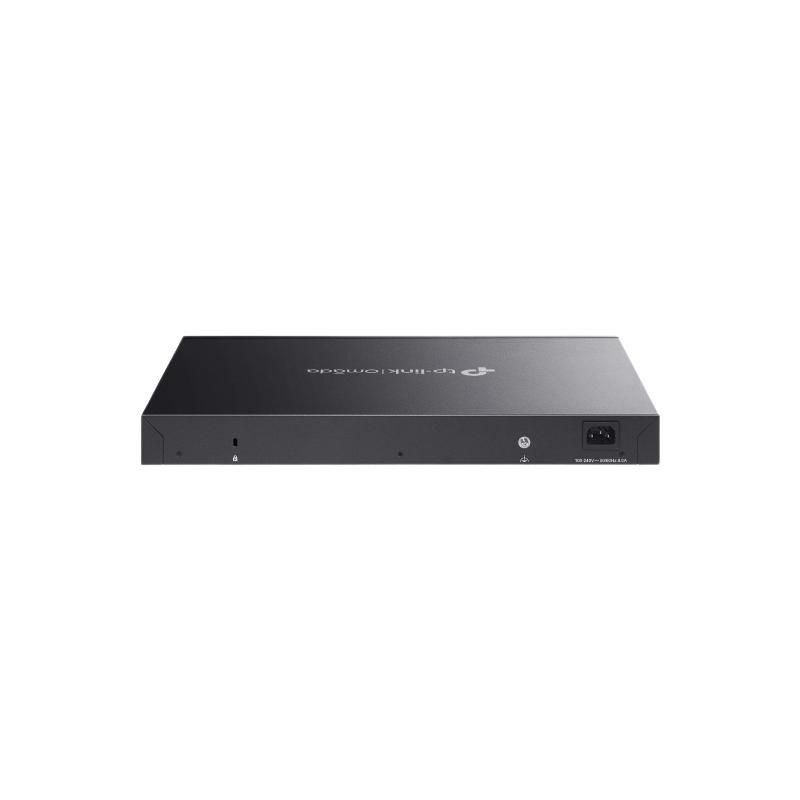 Oferece segurança avançada (ACL, Port Security, 802.1X, defesa contra DoS), QoS inteligente para priorizar voz e vídeo e pode ser gerenciado via Omada SDN em nuvem ou de forma independente (Web, CLI, SNMP).