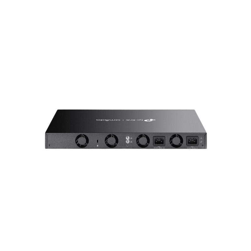 Projetado para alta disponibilidade, conta com fontes redundantes substituíveis em campo, suporte a VRRP e ERPS, e pode ser gerenciado pela nuvem via Omada SDN ou de forma independente (Web, CLI, SNMP e RMON).