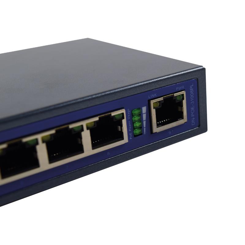 O switch DN-POE-31008PL é uma solução eficiente com 9 portas, fornecendo rápida conexão 10/100 Mbps e 8 portas com fonte de alimentação PoE. Ele detecta automaticamente a tensão, potência e velocidade, tornando a instalação fácil e prática. Com capacidade multifuncional, pode habilitar e desativar VLAN. O switch possui interface com 8 portas 10/100 Mbps PoE e 1 porta 10/100 Mbps Uplink. Sua taxa de encaminhamento é de 1.34 Mpps, e o backplane oferece 1.8 Gbps de capacidade. Com certificações Anatel, CE, FCC e RoHS, o switch é confiável e seguro para operação. Seu design compacto de 191 x 29 x 105 mm e ampla faixa de temperatura de operação tornam-no uma escolha versátil para diferentes ambientes.
